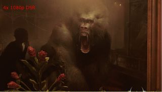 These two images above from Dishonored 2 show a clear difference in texture fidelity on a 1080p display between no DSR and 4x DSR (4k, in other words). Everything in the image - from the painting of the gorilla to the flower in front - pops much more. The performance hit in this case was considerable however, knocking down the framerate from 75 to 30.